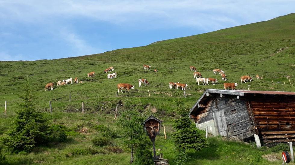Diese sind ca. 22 km von der Hofstelle entfernt. Im Sommer sind die Rinder für vier Monate dort. Betreut werden sie den Sommer über von der Familie.